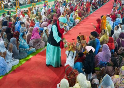 Each night, Sant Baljit Singh Ji spent over an hour walking among the attendees while the devotional singing continued. As he moved through the tents, little children eagerly offered him flowers, which he accepted with warmth. The crowds were delighted by these exchanges, cherishing the chance to witness them up close. After Sant Baljit Singh Ji returned to the dais, the devotional atmosphere endured, with everyone immersed in joy. Attendees rejoiced tirelessly, often wishing the celebration would last longer, and so the festivities continued well past midnight each day.