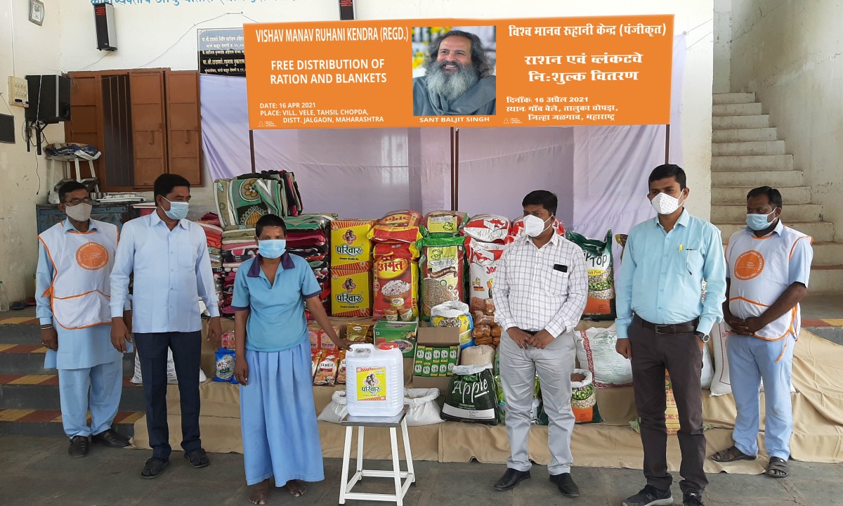 We had made a request to Vishav Manav Ruhani Kendra to help us by giving one month’s ration supplies and 65 blankets (market price Rs.82,000). With the blessings of Maharaj Ji, these were granted as soon as we made the request. This service was completed successfully in the presence of the Tehsildar, Sh. Anil Gavit. We found the discipline of the volunteers really commendable.