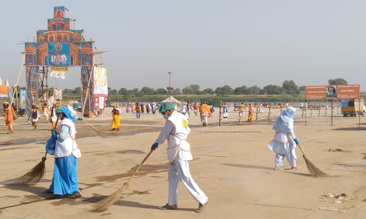 A mini Kumbh Mela was held on the bank of the Yamuna River in Vrindavan, Mathura in Uttar Pradesh from February 16 – March 25, 2021. After the festival, the Nagam Nigam Mathura Vrindavan (Municipal Corporation of Mathura and Vrindavan) organized a cleaning campaign along the bank of the Yamuna River.